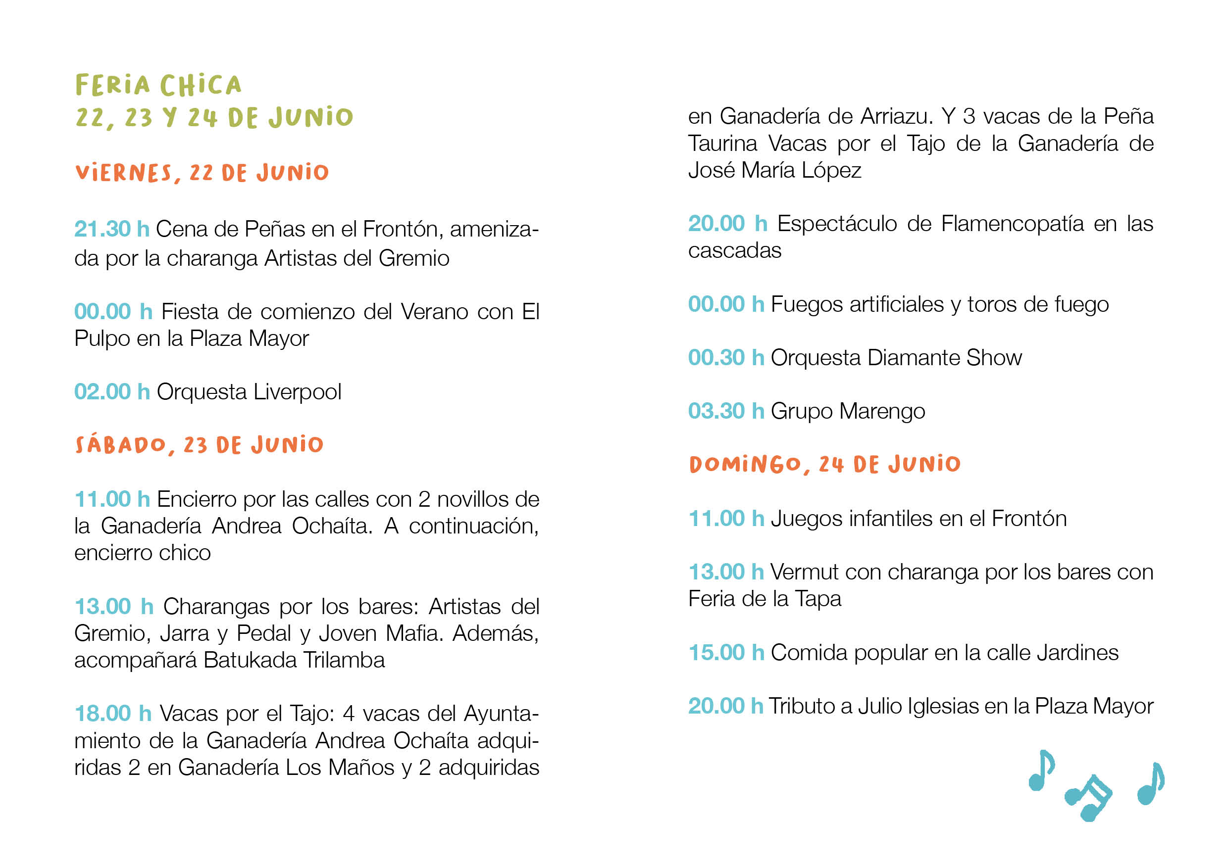 18.00 h Vacas por el Tajo: 4 vacas del Ayuntamiento de la Ganadería Andrea Ochaíta adquiridas 2 en Ganadería Los Maños y 2 adquiridas en Ganadería de Arriazu. Y 3 vacas de la Peña Taurina Vacas por el Tajo de la Ganadería de José María López SE APLAZAN AL 14 DE JULIO, A LA MISMA HORA
