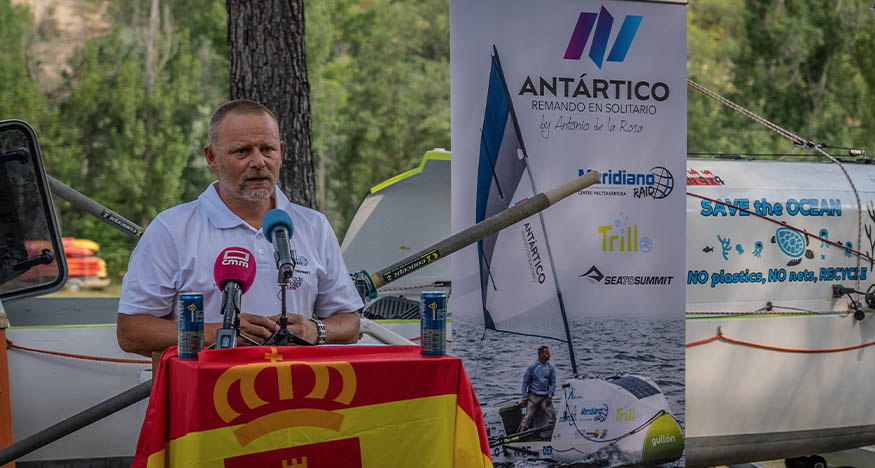 Antonio De la Rosa presentó ayer en Trillo el que será el reto “más difícil y peligroso” de todos los que ha completado: Expedición Antártico, remando en solitario, en el que tratará de cruzar desde la Patagonia, al sur de Argentina, hasta la isla de Georgia del Sur, pasando por la Antártida, en una embarcación y en solitario.