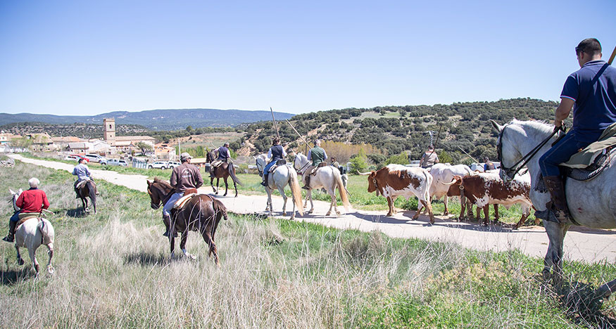 Más de 80 caballistas participaron el pasado sábado en la VI Trashumancia de Bueyes de Azañón, una cita cada vez más seguida por los amantes del mundo del toro y el caballo que, en esta ocasión, guiaron a tres paradas de toros mansos de las ganaderías Campo Bravo, Andrea Ochaíta y Carlos Sopeña hasta los pies de las Tetas de Viana.